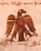Sea cual fuera el origen del escudo de Sancho VII de Nabarra, estoy convencido de que nuestro color es gules o rojo. Me niego a aceptar que estuviera sobre fondo de oro o amarillo, como sí lo está el águila negra bicéfala de la actual comuna francesa de L’Aingle, Casa de la cual toma nombre y dicho emblema. Además, como he podido comprobar en alguno de mis viajes y a través de bastantes documentales, el águila de sable o negra sobre fondo de oro o amarillo, ha servido y sirve para representar anacrónicamente a Carlomagno, aquel que quemó Iruñea -matando y violando a sus habitantes- y que fue derrotado finalmente por nuestros antepasados los vascones libres o nabarros un 15 de agosto del año 778.