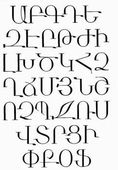 Sin embargo, alrededor del año 400, y al contrario que en la centralizada Iglesia latina, el Catholicos Sahak Partev propone a un respetado y culto monje, Mesrop Mashtots, la elaboración de un alfabeto propio, que refleje fielmente la fonética de la lengua armenia -la lengua del pueblo-, y permita sustituir a los alfabetos griego y siríaco.