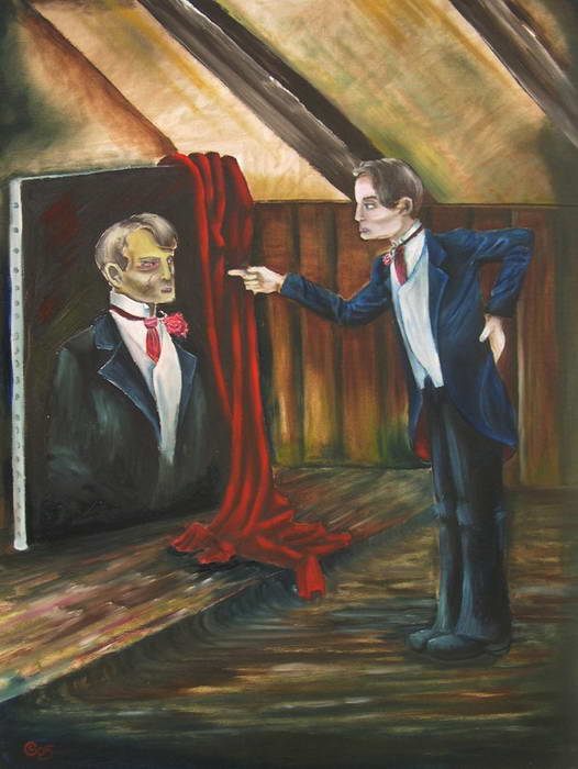 “Cuando entraron, encontraron, colgando de la pared, un espléndido retrato de su señor tal y como lo habían visto por última vez, en el esplendor de su exquisita juventud y belleza. Sobre el suelo había un hombre muerto, en traje de noche, con un cuchillo en el corazón. Estaba ajado, lleno de arrugas, y su aspecto era repugnante. No fue hasta examinar sus anillos que reconocieron de quién se trataba.” Final de “El retrato de Dorian Gray” de Oscar Wilde