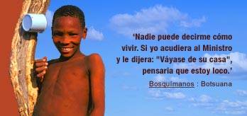 A muchos kilómetros de distancia, los pueblos bosquimanos y hotentotes, que aún hoy luchan valerosamente por su tierra, sus recursos y su identidad en el sur de Africa, repiten en sus denominaciones propias raíces como khoikhoi (“hombres de hombres”, los hotentotes) y san (“recolectores, que recogen del suelo”, término aplicado a los bosquimanos recolectores por sus vecinos ganaderos hotentotes). El término bosquimano es de origen afrikaans (holandés), y significa  “hombre del bosque”. Aún hoy se debate sobre las denominaciones correctas para todos estos pueblos, pues muchas de ellas se originan en apelativos peyorativos de unos pueblos hacia otros.