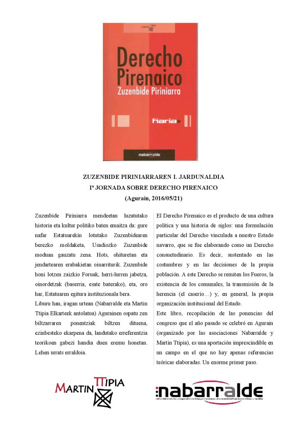 Tagged: auzolana, batzarrak, comunal, concejos, Derecho Pirenaico, herri-lurrak, Martin Ttipia KE, Nabarralde, Zuzenbide Piriniarra