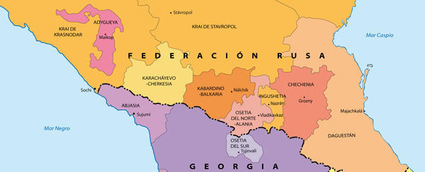 Organización administrativa del Cáucaso norte. Las repúblicas autónomas de Adygueya, Karachayevo-Cherkesia y Kabardino-Balkaria agrupan a la población circasiana aún existente (Fuente: http://www.cidob.org)