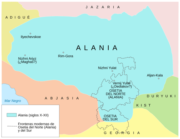 Los osetios son los antiguos alanos, que residían principalmente en las llanuras al norte del mar Caspio. Los alanos llegaron a ser conocidos como los “Osi” por los georgianos, de donde se deriva su nombre moderno. En el siglo IX formaron un reino cristiano centralizado en el norte del Cáucaso conocido como Alania, sobreviviendo como estado tampón amortiguador entre los imperios de los jázaros, los bizantinos y los árabes durante varios siglos.