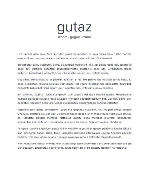 Haren eskutik, gure arbasoek beren lurraldea eta gizartea antolatzeko, izendatzeko, kudeatzeko eta maitatzeko moduei buruz ikasteko aukera paregabea izango dugu. Tamalez, globalizazioaren arrabolaren azpian galtzear dugun ezagutza bat, mundu bat, gure nortasuna sendotzeko ezinbestekoa dena, eta, hau goraipatu behar da, etorkizunaren erronkei aurre egiteko tresna baliotsuak ematen dizkiguna.