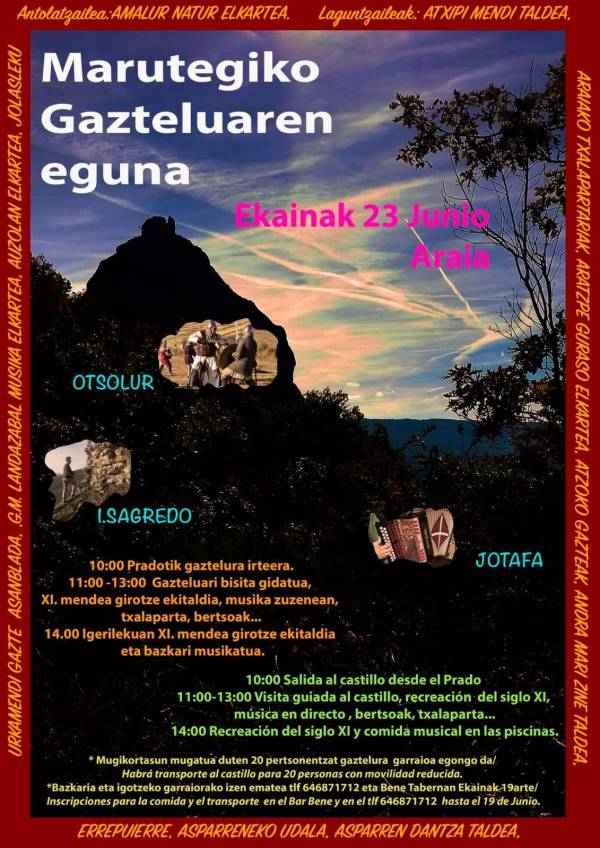 Se harán dos grupos, euskera y castellano, siempre que se puedan formar grupos de al menos cinco personas. La visita comienza a las 11:00. Al mediodía, para los que lo deseen, comida a las 14:30 en un restaurante o txoko de la zona (20 euros). La visita es gratis. Seguidamente proyección y charla en el mismo local.